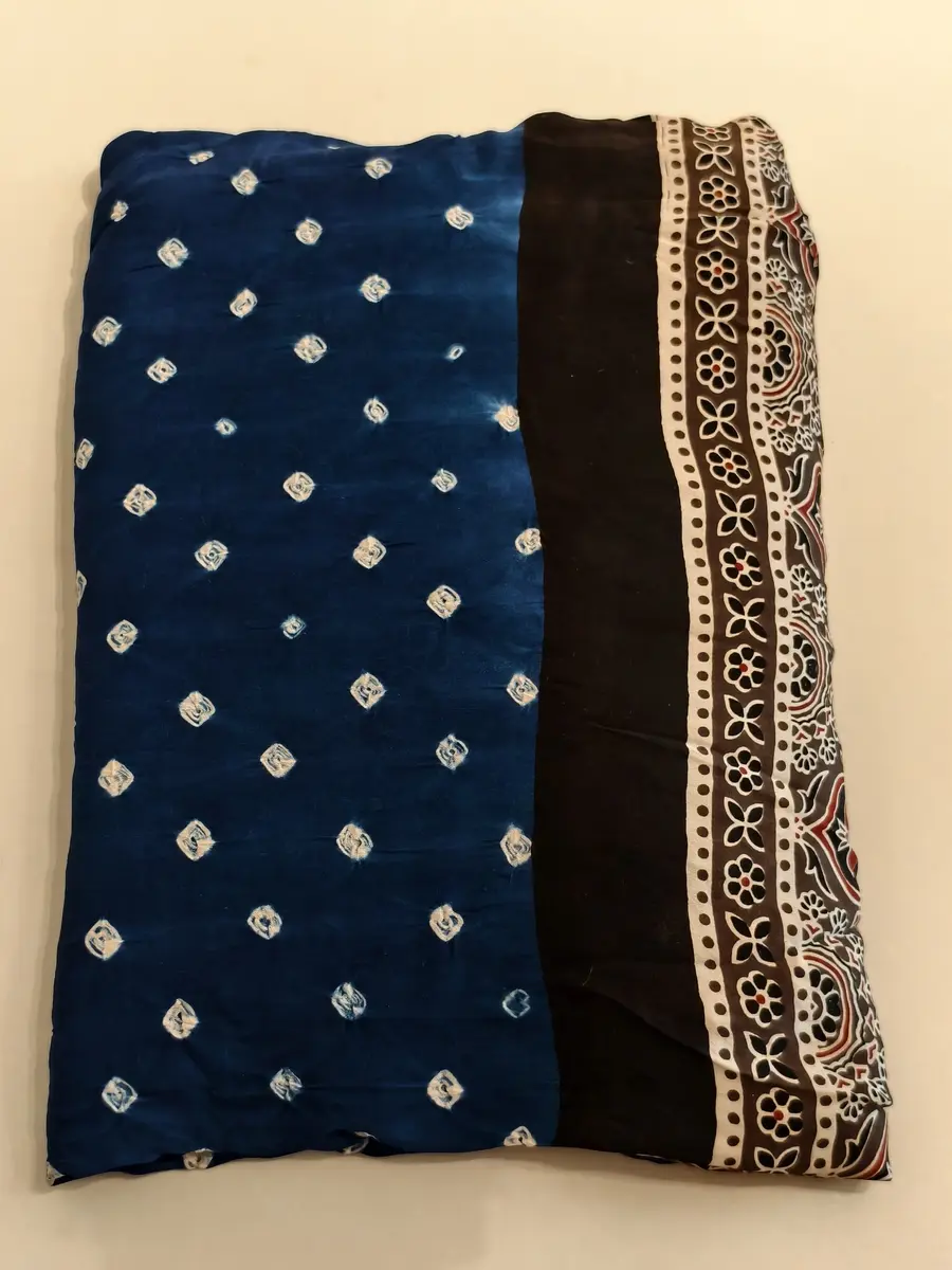 Ajrakh Printed Blue Modal Silk Unstitched Salwar Suit