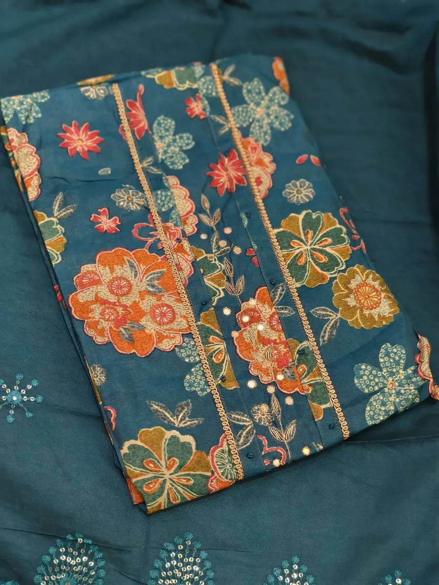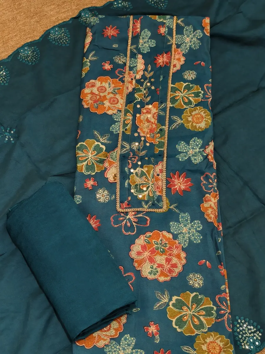 ₹1,755.00Add to cartProduct Details - Printed rayon kurta fabric with embroidered mirror worked patch on yoke. - Plain rayon salwar - Printed soft cotton Dupatta. Size & Fit Kurta: 2.5 Mtrs; Bottom:…