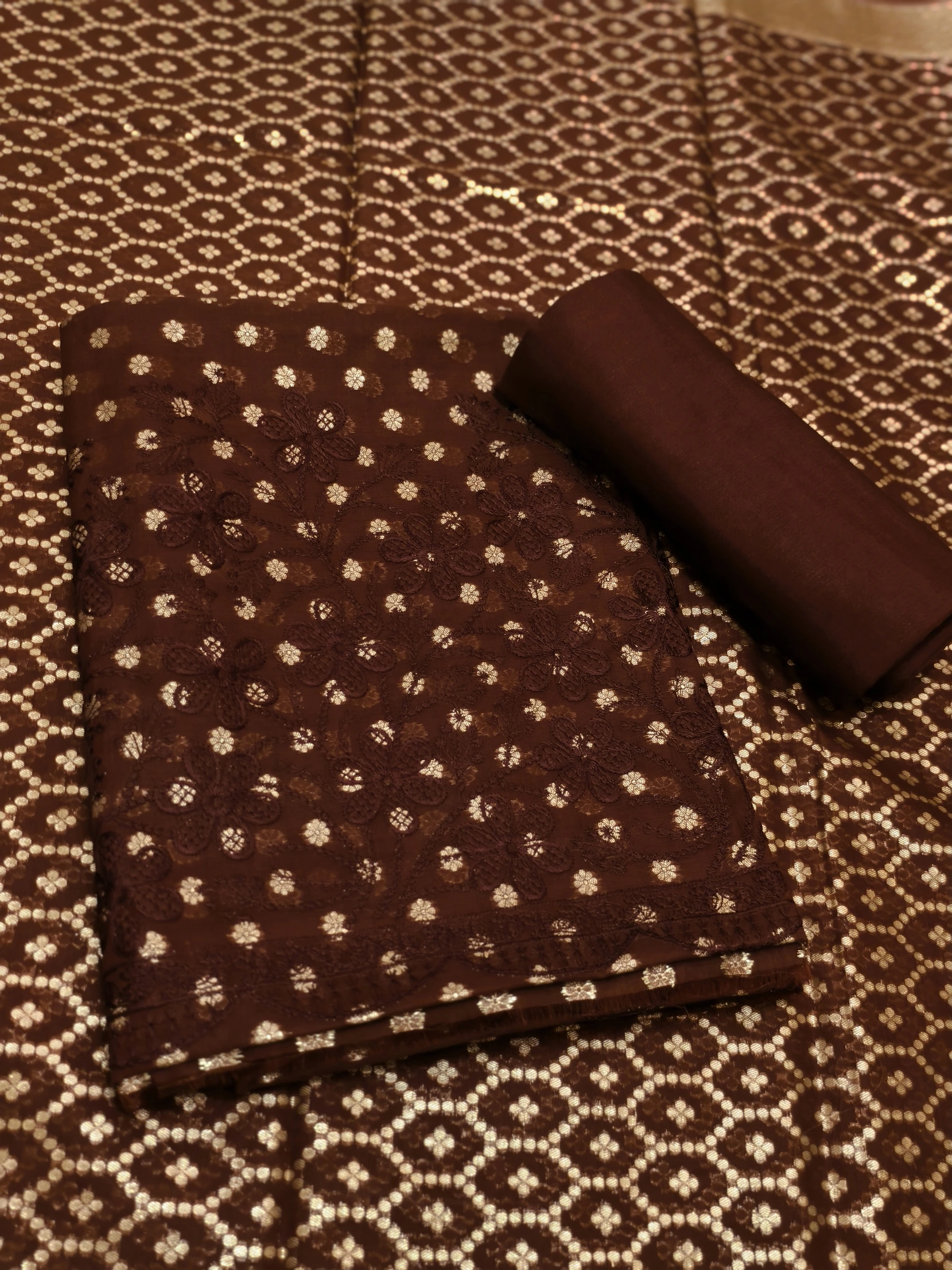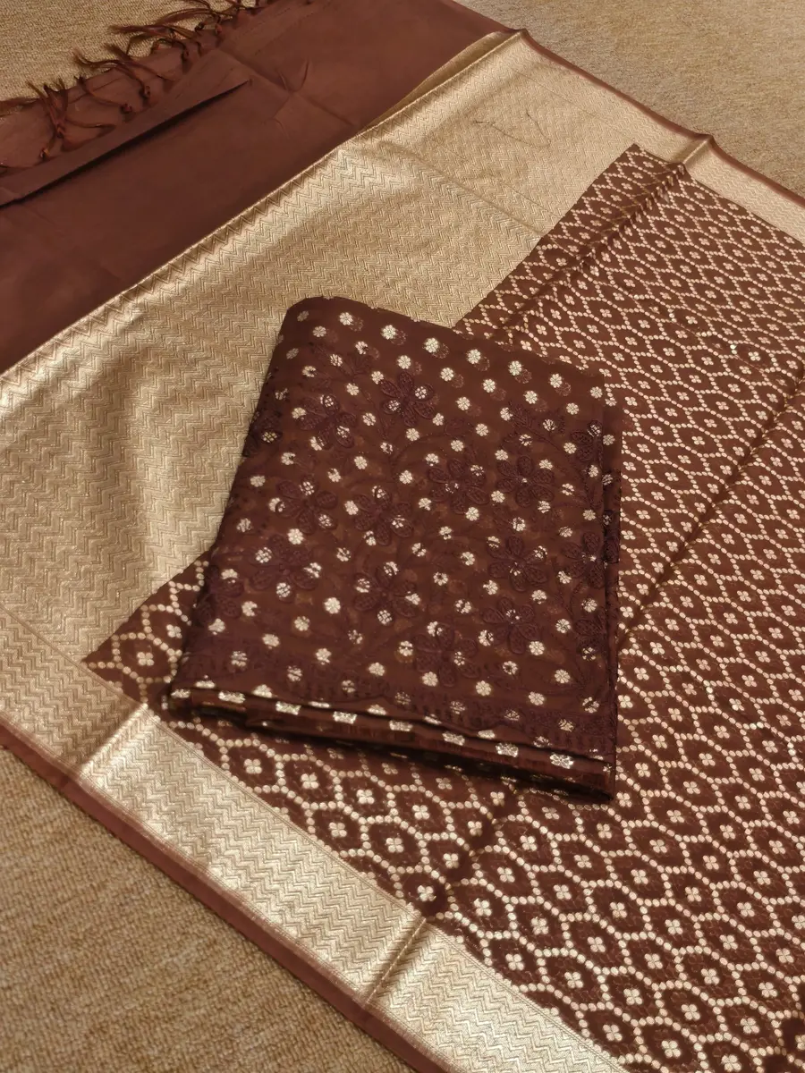 Brown Banarasi Chanderi Unstitched Salwar Suit